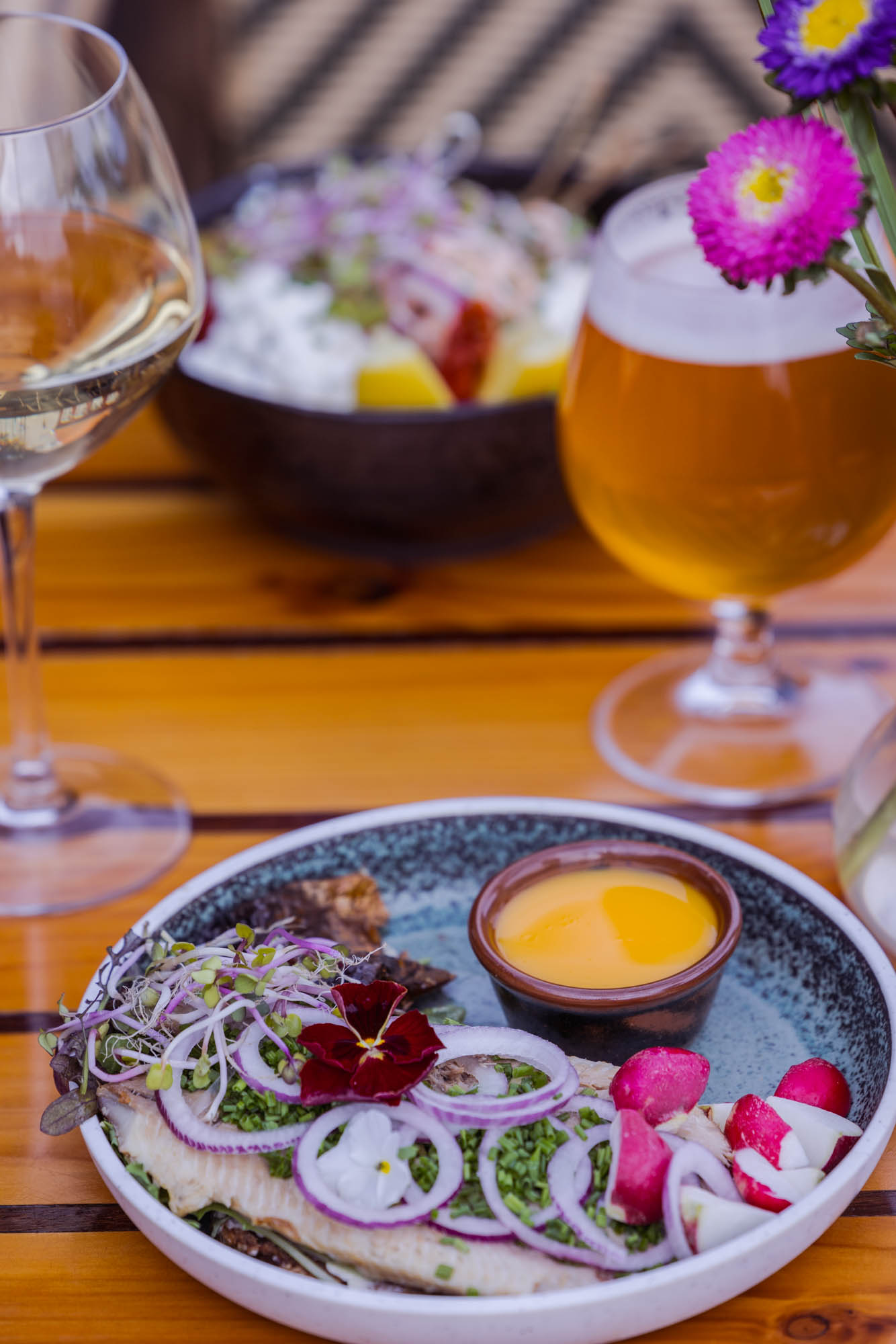 I højsæsonen er der live musik hver aften. Nyd drinks, vin eller en af vores varme fristelser i den hyggelige atmosfære og få en caféoplevelse udover det sædvanlige på Bornholm.